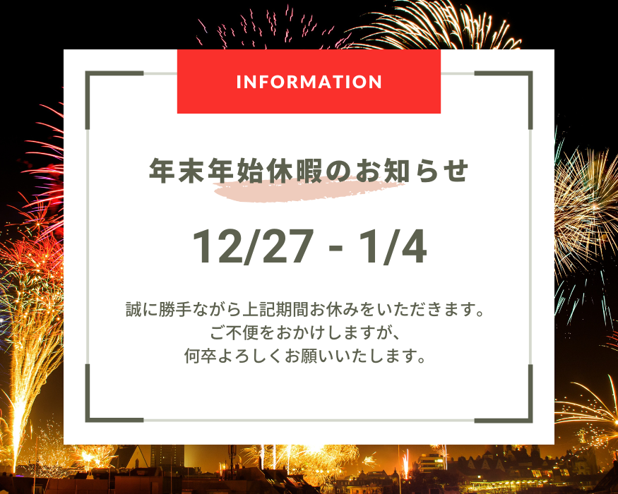 平素は格別のご高配を賜り、厚く御礼申し上げます。当社は下記の期間におきまして、誠に勝手ながら休業とさせていただきます。